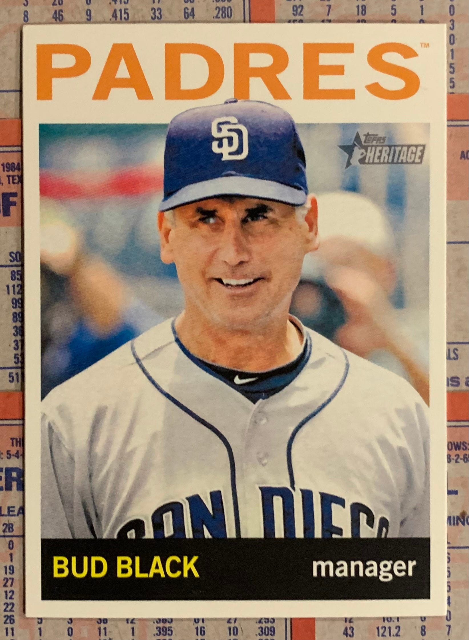 Sitting behind Padres manager Bud Black and other coaches on their folding chairs.